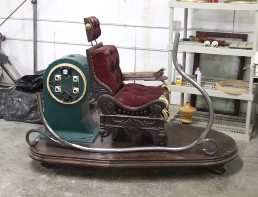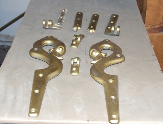 Urethane castings from mold taken from an original Berninghaus barber chair. A Berninghaus chair was for sale on ebay and it didn't sell. The seller lived reasonably close to me so I contacted him and asked if I could borrow the parts to make molds, I had nothing to lose by asking. To my surprise he said yes. This was before I was able to acquire a chair for myself. |