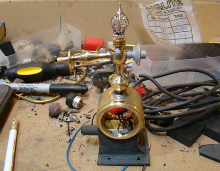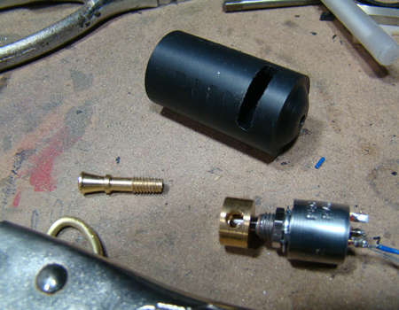 I used Delrin plastic to construct it. For the motor speed control I used a very small and little exspensive POT. The throttle handle is made of solid brass |
