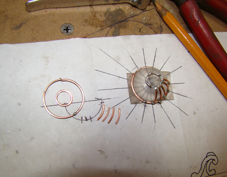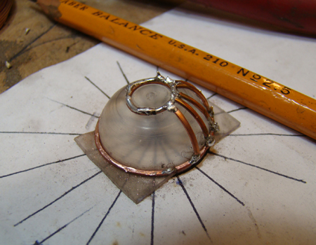 it to the smaller copper loop. I used acrylic to form the cone shape.