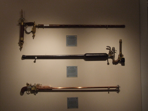 An exhibit of Steampunk and it's origins. The exhibit is created by Aeronaut Productions and is currently on display at the Muzeo in Anaheim. The Time Machine in the exhibit is my current replica of the George Pal design. We installed it into the exhibit on December 12th this year . The exhibit is very professionally designed and executed by the members of Aeronaut Productions and well worth the visit. Another exhibit att he Muzeo is a gallery of Victorian art including paintings, a wlking stick collection and various firearms of the period. Here's a few photos from some of the exhibits |