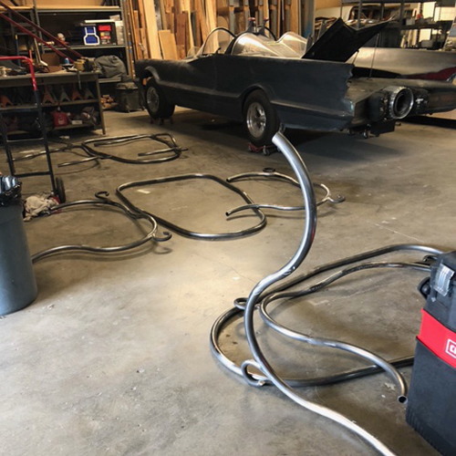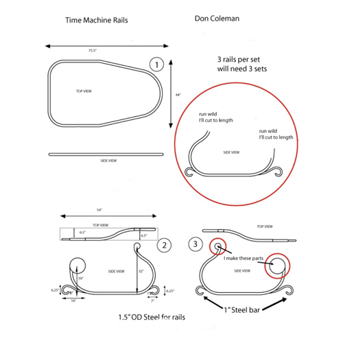 The set of rails I used on my first build were made at Warner Bros. Studios in Burbank, CA. I was working on a film on the lot and it was convenient to have them do it and I knew they would not have a problem making only one set of parts. In the 'real' world, it's often difficult to find a manufacturer to do a one off. Most company's second question is, how many 100's do you want. Warner charged $650.00 to do all the bending/welding and cover the cost of material. This was in the early 90's. I was told if I came back it would cost more for a another set, When