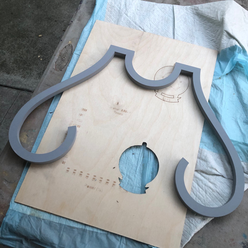 to the side rails and the console in the front of the machine. This part is made of 1/2" aluminum and was cut using a water jet cutter. Sanded and primed. |