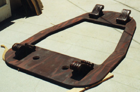 | Here is the lower layer of the base with the feet atttached. The entire base was stained mahogany and finished with several coats of orange shellac. | |