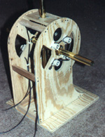 | This is the beginning of the engine housing. I used 3/4" plywood for the main structure. Four lamp sockets were installed to light the pods and two fans per side to circulate the air. | |
