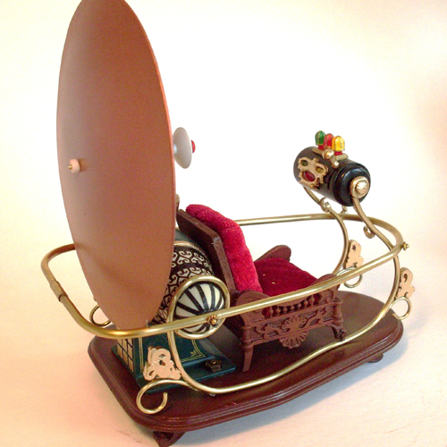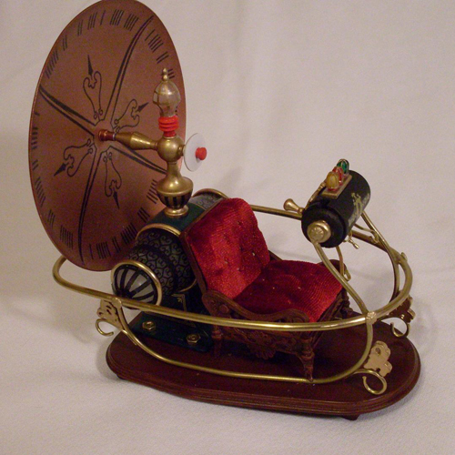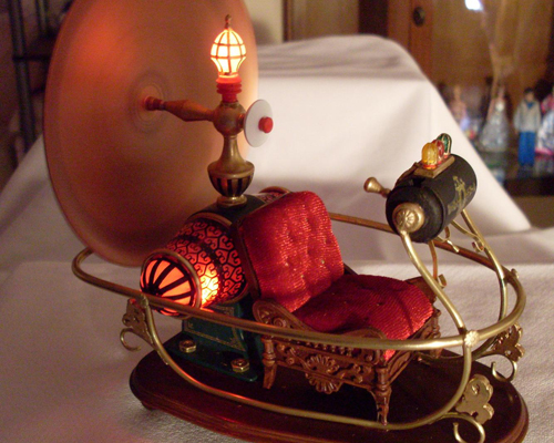 The first thing that needs to be decided is how much of the basic parts of the model can be used and how much will have to be scratch built. Given that the kit parts do not lend themselves to a transformation like this it requires quite a bit of work no matter which route you choose. I decided that I wanted to use as many of the kit parts as possible and ended up doing just that, with only the rails, chair cushions and clear pods being scratch built. The console lights and rear lamp parts were recast in a clear resin so that they would light up. Otherwise the kit was built and looks pretty much as intended. Click Here to a video of the model if you'd like to view it in operation. If anyone else is thinking of converting their model to a working version I would love to discuss the project with them and maybe pass along a few time saving hints. |