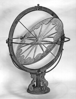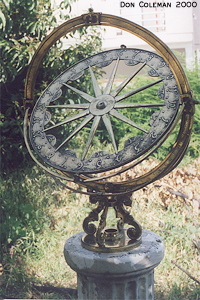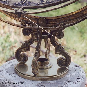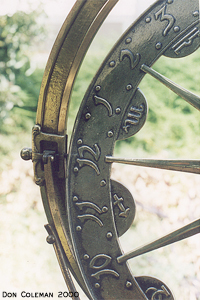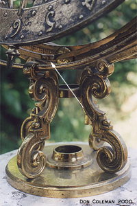 The entire sun dial is made of brass castings. The outer support ring is not truly round, it appears it was assembled this way originally and not as a result of damage as the support castings are mounted off center.