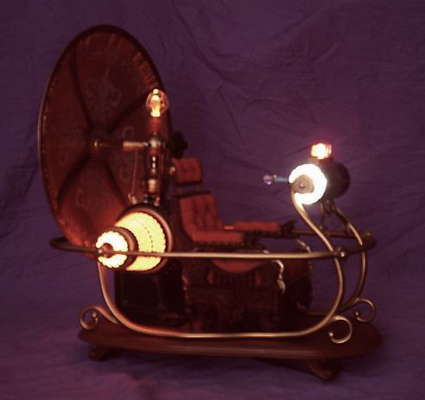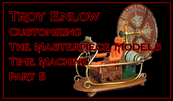 ORIGINAL and ONE OF A KIND replica from George Pal’s 1960 classic hit THE TIME MACHINE. I can say many things about this museum quality project that took one year 900 hours to build but the pictures and the link will say much more. The lamps on top of the control console are colored led's that were hollowed out from the inside so that smaller led's could be placed inside them to get the look of a real old fashion light bulb. The red power lamp on the top of the Time Generator was custom turned from acrylic rod stock into the form of an old edison lamp and is illuminated from underneath by a red led. The date on the control unit is DEC 31st 1899 the first time it was used in the film. All the lighting is LED incorporated the proper electronics were used and they will never burn out or get hot. To see a short video of Troy's model in action. CLICK HERE |