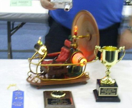 This model just took FIRST place, Best Sci-Fi subject and BEST IN SHOW at the Seattle IPMS Spring contest on April 22nd 2006....not too shabby for a group of folks who’s main thing is aviation and tanks! The crystal lever is a 9mm lead crystal imported from Austria and the handle is made from two colors of fimo modeling clay ‘white’ and ‘turquoise’ twisted together, roughly shaped, heated then shaped / turned in a dremel to a fine polish...some folks asked if it was real turquoise. All the pins are real finish nails and clothing pins of many sizes, some plain silver some painted and antiqued. Why sell it?....honestly, some family matters have become priority, it's that simple and for me...I’m a builder that's the part I love....after I’m done...it will just sit. Troy's Model sold on ebay