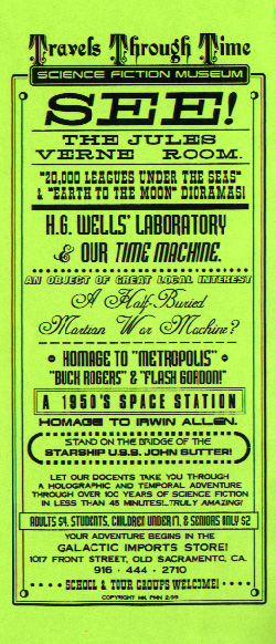 The museum is officially Closed.The full size Time Machine I built for them has been Sold. |